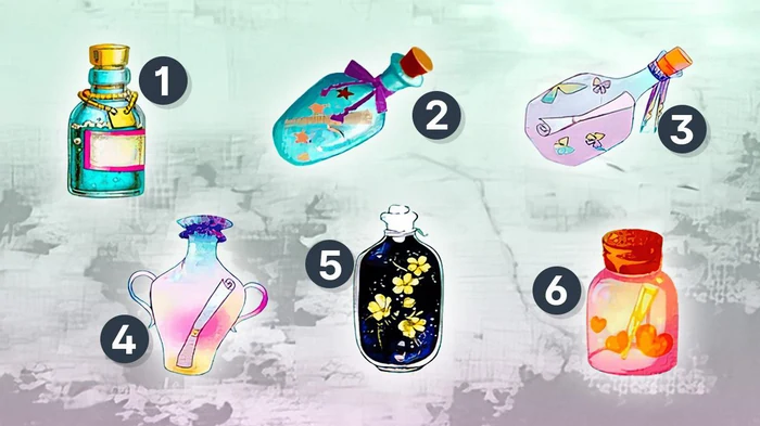 Посмотрите на изображение и интутивно выберите бутылку с посланием.