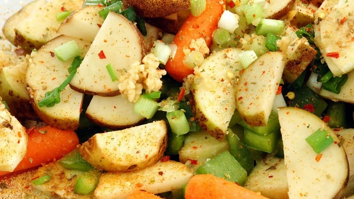 В состав входят обычные для многих продукты: картофель, грибы, помидоры, морковь, лук и специи. Нужно подготовить все овощи, перемешать, выложить в рукав для запекания и отправить в духовку.