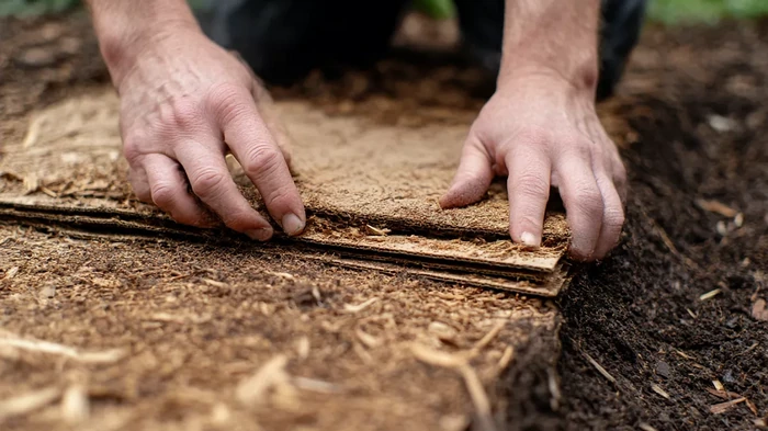 Одно из главных преимуществ картона — его способность подавлять рост нежелательной растительности. Если весной разложить листы картона на грядках или между рядами, сорняки не смогут пробиться через плотный слой. Без света они быстро слабеют и гибнут.