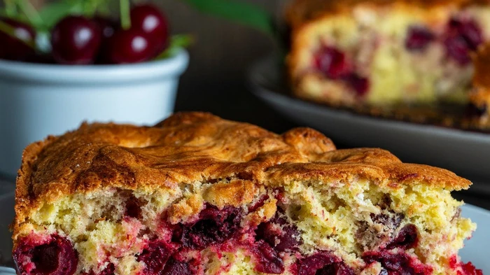 Воздушная шарлотка с вишней — это ароматная начинка с легкой кислинкой и пышное тесто.