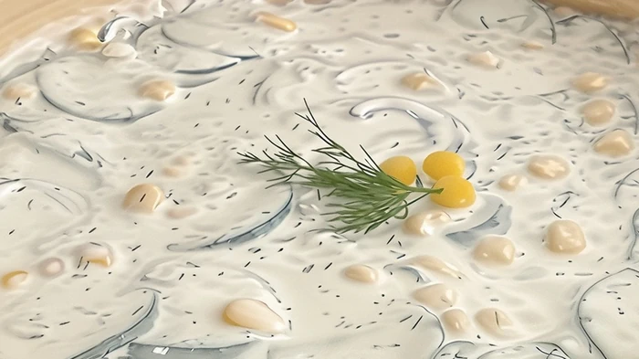 Этот рецепт, по страницы Aytens Kitchen, идеален для обеда, легкого перекуса или праздничного стола. Салат сочетает свежие овощи и нежный йогуртовый соус, который делает его одновременно легким и питательным. Огурцы добавляют свежесть, кукуруза — сладость и текстуру, а красный лук — пикантную нотку. Зелень, особенно укроп, придает аромат и завершенность блюду.